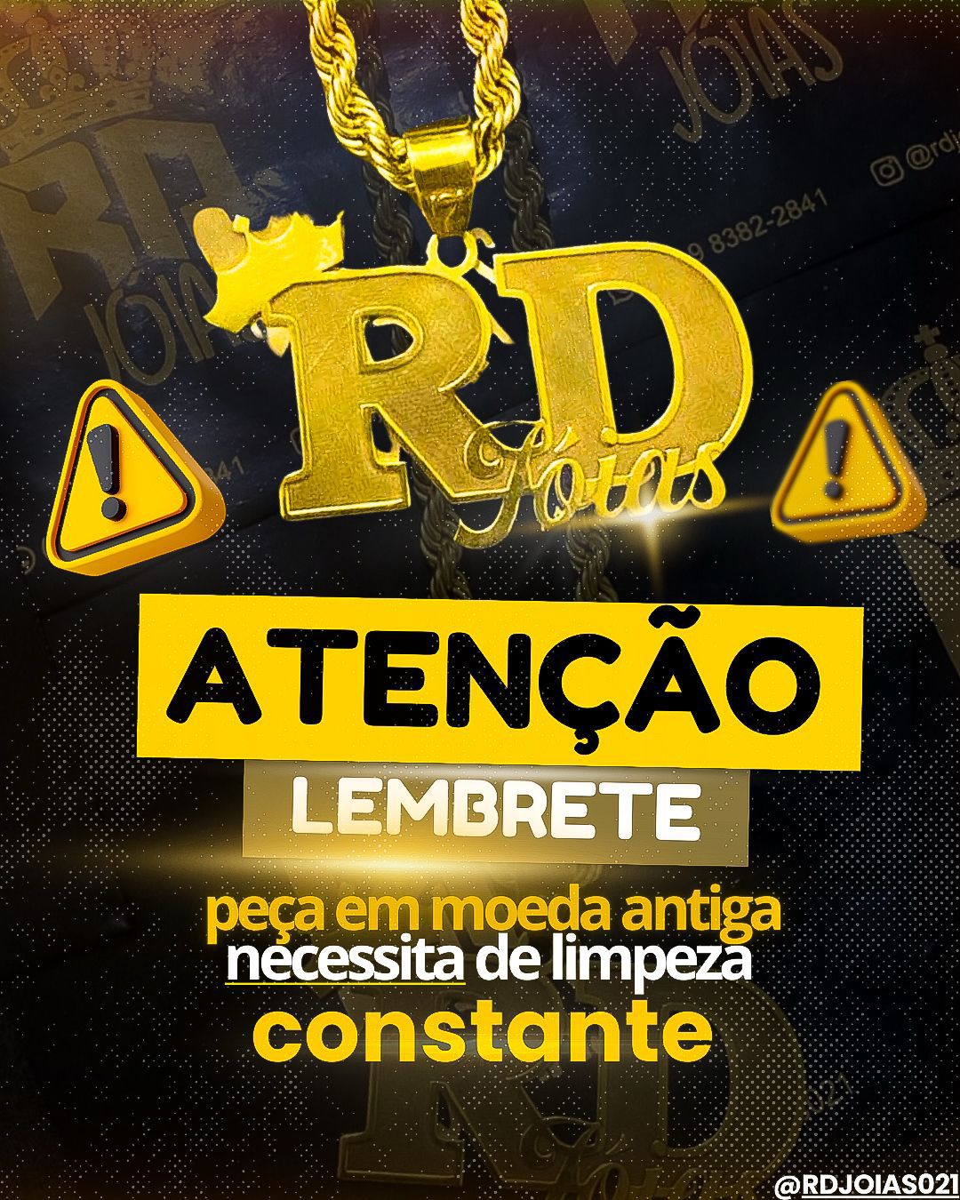 Em caso de a peça escurecer ou sujar, basta limpar com água e sabão neutro, e ela voltará ao brilho original.
